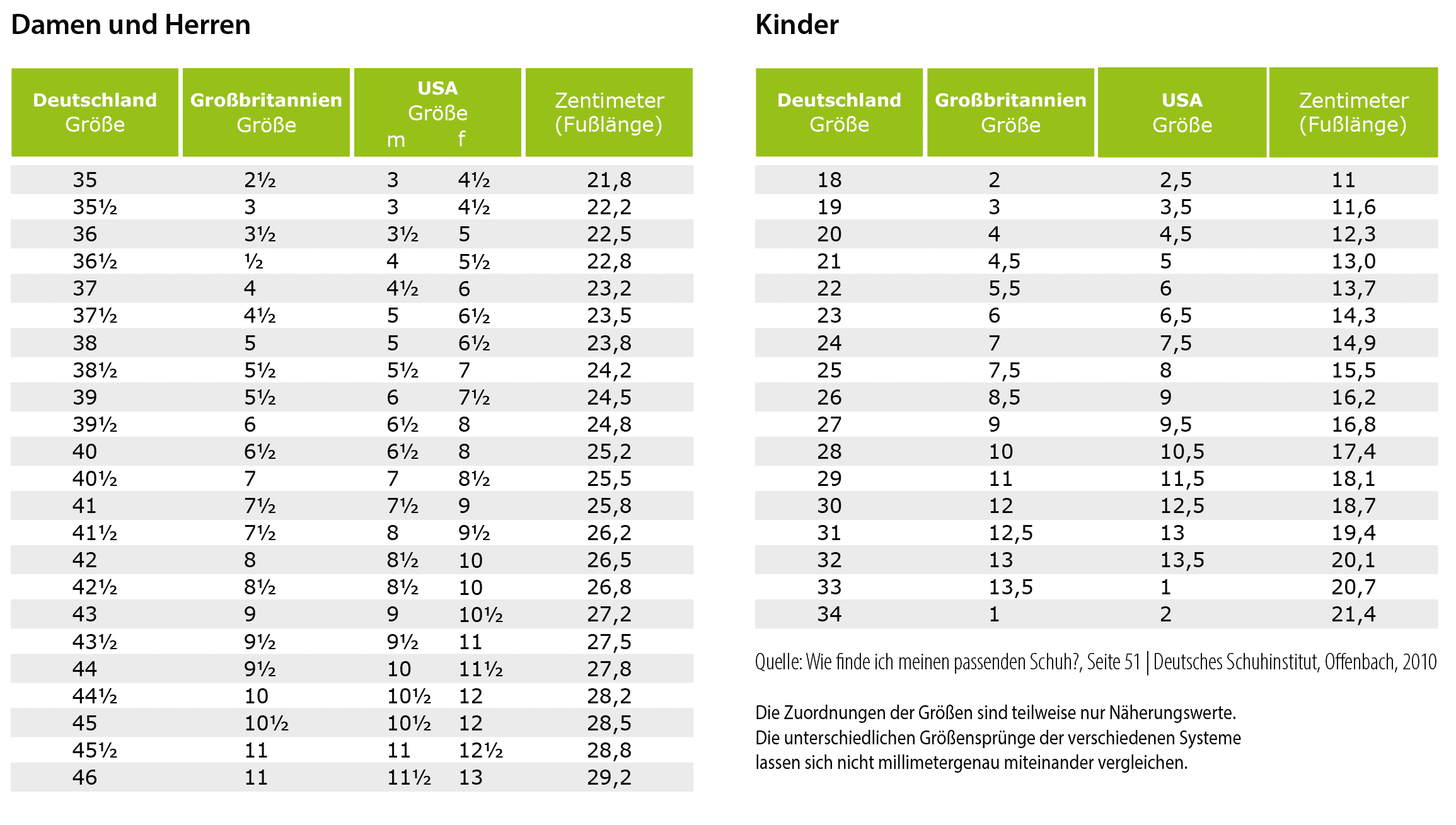 Schuhgrößentabelle: